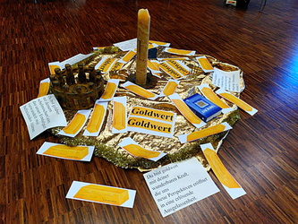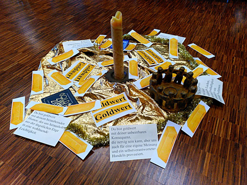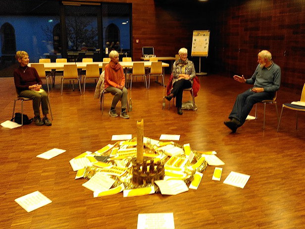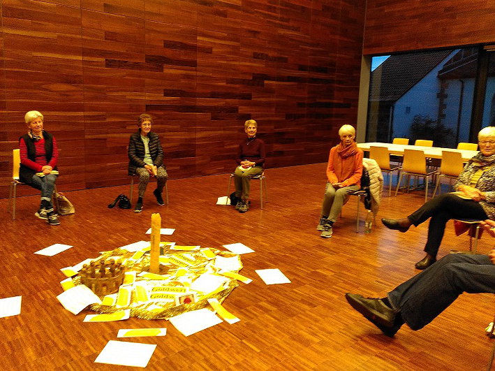Regionalreferent Volkmar Franz nahm die Gelegenheit wahr, kurz vor der Schließung der Regionalstelle nochmals einen Besinnungsnachmittag zu gestalten. Sehr intensiv und persönlich entwickelte sich ein Austausch über die Frage: "Wer oder was ist mir Gold wert in meinem Leben?" Genau so intensiv war das Bibelteilen zum Psalm 139.