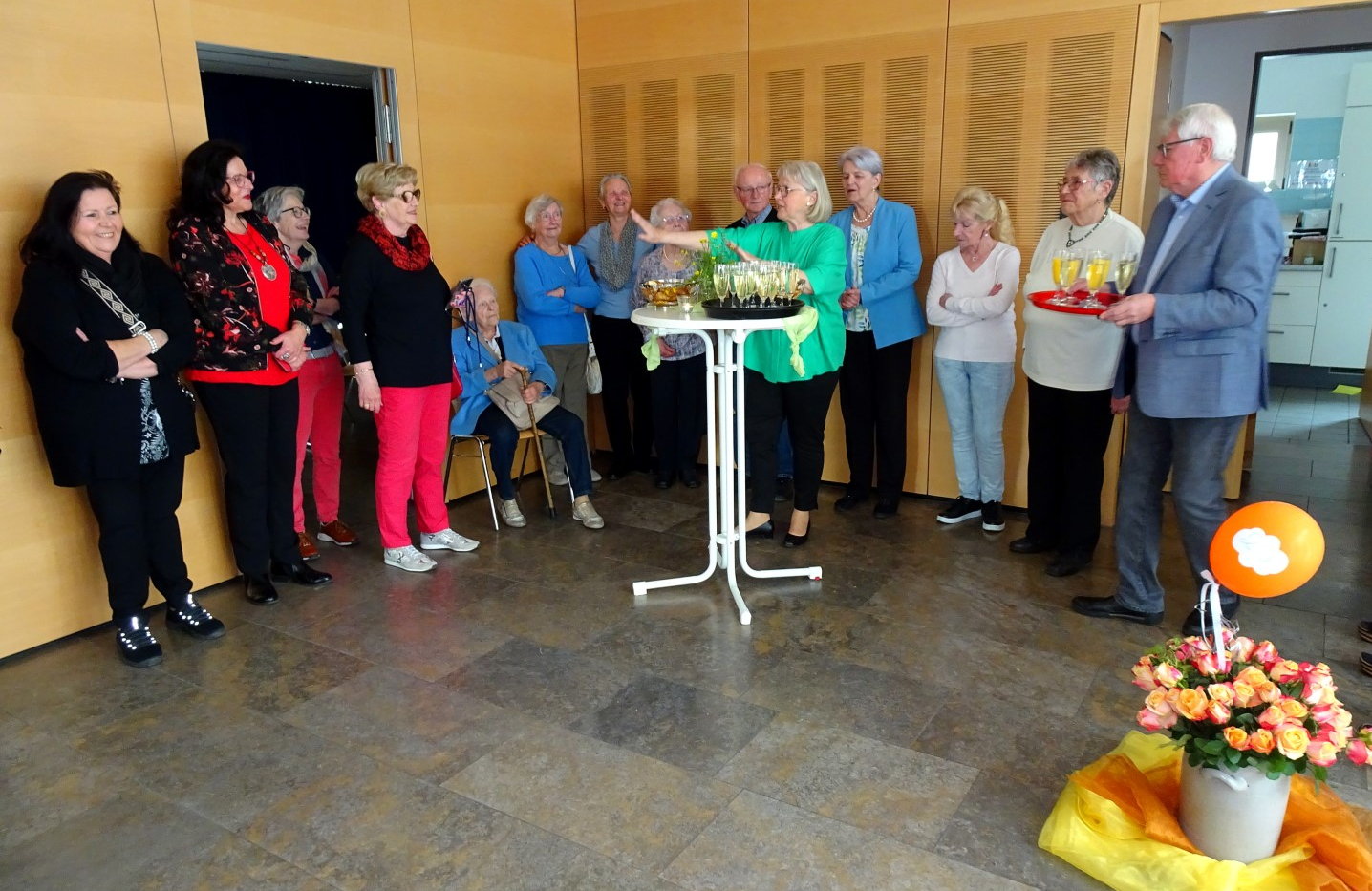 Die Leiterin des Tanzkreises begrüßte die Anwesenden bei einem Sektempfang.