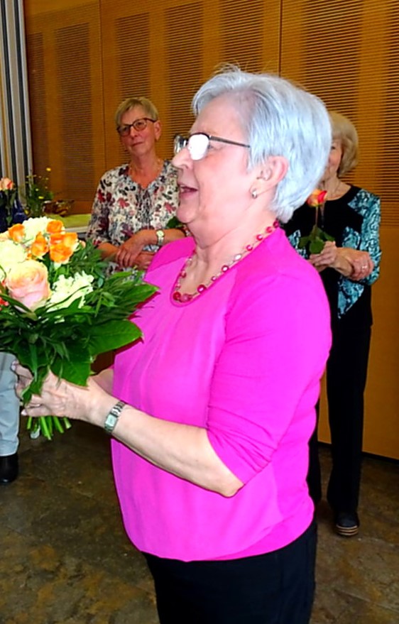 Die Tanzleiterin Renate Reinhard, die den Tanzkreis seit dem Gründungsjahr 2002 leitet, wurde mit viel Applaus für ihr Engagement geehrt, und ihr wurde mit einem Blumenstrauß gedankt.